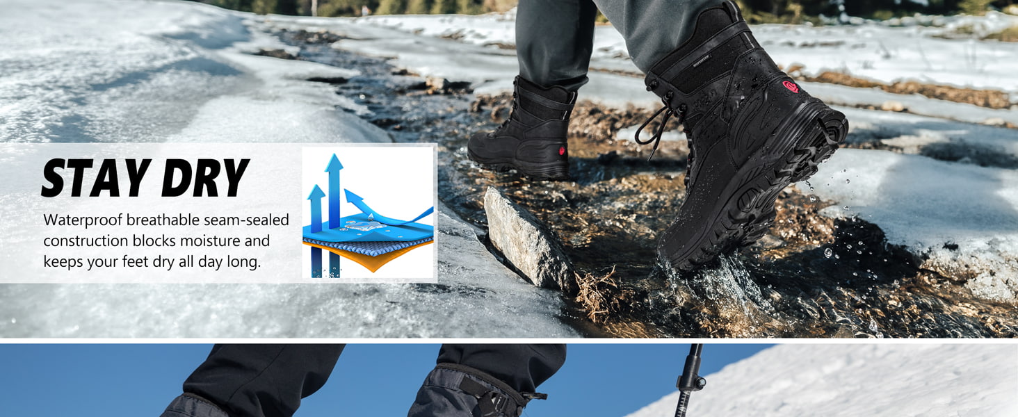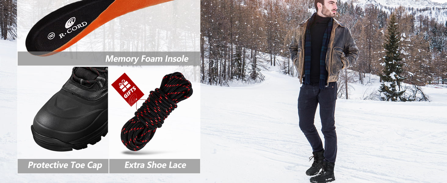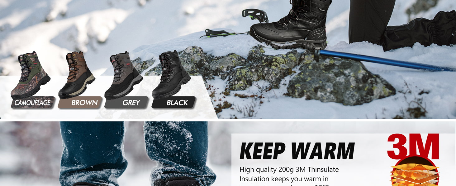 Men's Waterproof Slip-resistant High-top Snow Boots Insulated Warm Durable Lace-up Winter Boots For Outdoors
